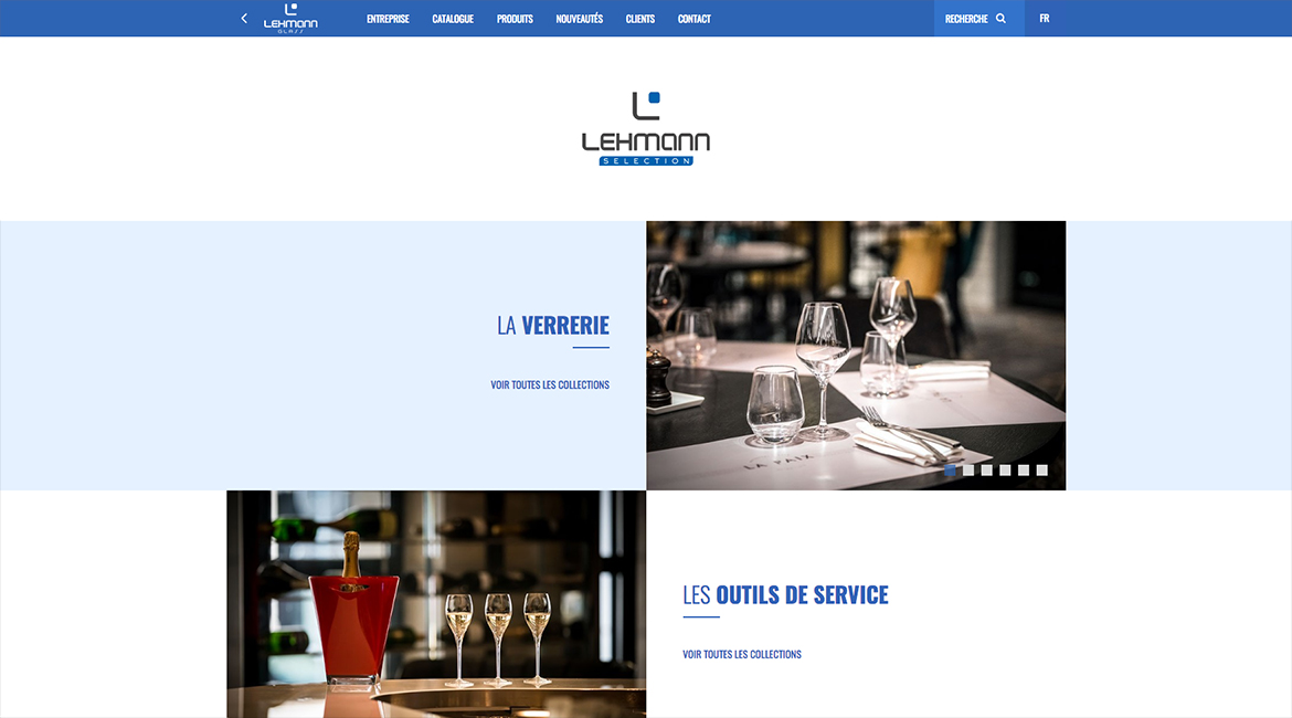 Accompagnement dans le positionnement avec la création d’un site internet présentant la marque premium Lehmann Glass ainsi que Lehmann Sélection, destinée aux professionnels de la restauration.